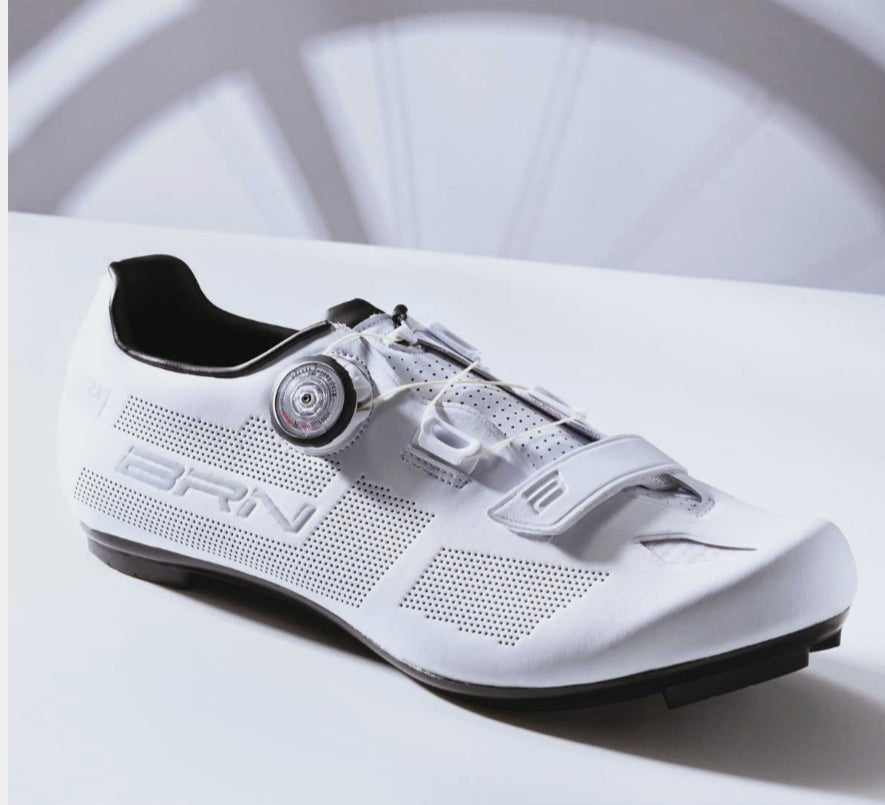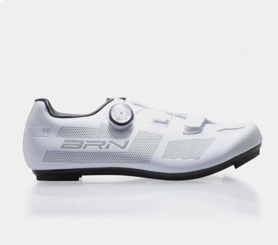 Eleganti, aerodinamiche e comode, le scarpe BRN RX presentano la combinazione perfetta tra prestazioni, rigidità e comfort. RX utilizza un design della tomaia senza cuciture, composta da un singolo pezzo di microfibra traspirante per adattarsi alla forma del piede come un guanto. Il sistema di chiusura utilizza un singolo rotore e un cinturino in velcro per una vestibilità sicura in ogni punto del piede. Una combinazione di rete in nylon, fori perforati e linguetta traspirante garantisce un'eccellente ventilazione. La suola R250 migliora le prestazioni e il trasferimento della potenza al pedale senza compromettere peso e comfort.