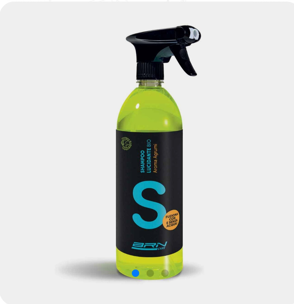 Shampoo lucidante 100% biodegradabile alla fragranza di agrumi. La sua formula è studiata per eliminare fango, catrame, polvere, grasso ed altri tipi di sporco dalla bicicletta in modo semplice e rapido, lasciandola pulita e con una lucentezza perfetta. Può essere utilizzato con e senza acqua semplicemente abbassando o alzando il beccuccio.